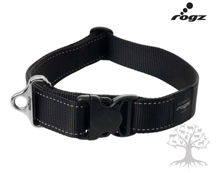 Rogz Nailonpanta Utility Jumbo Black. Erittäin laadukas ja pehmeästä nailonista valmistettu 40mm leveä kaulapanta, joka soveltuu hyvin vahvoille ja aktiivisille liikkujille. Säädettävä kaulanympärys tekee pannasta erittäin hyvin istuvan. Tehokkaat heijastinpunokset parantavat näkyvyyttä pimeällä. Muovisen ja erittäin kestävän pikalukon ansiosta panta on helppo ja nopea pukea. Pannassa on todella vahva ja kestävä metallilenkki talutinta varten. Muovilukon toinen pää pujotetaan metallilenkin läpi ja napsautetaan kiinni pikalukkoon. Tämä LLT-tekniikka (Low Load Technology) estää kuormituksen aiheutumisen pikalukkoon, kun koira vetää. Pannan säätöhihnoissa on myös stopparit, jotka estävät pannan löystymisen. Katso esittelyvideo.