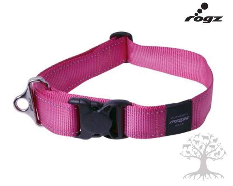 Rogz Nailonpanta Utility Jumbo Rosa. Erittäin laadukas ja pehmeästä nailonista valmistettu 40mm leveä kaulapanta, joka soveltuu hyvin vahvoille ja aktiivisille liikkujille. Säädettävä kaulanympärys tekee pannasta erittäin hyvin istuvan. Tehokkaat heijastinpunokset parantavat näkyvyyttä pimeällä. Muovisen ja erittäin kestävän pikalukon ansiosta panta on helppo ja nopea pukea. Pannassa on todella vahva ja kestävä metallilenkki talutinta varten. Muovilukon toinen pää pujotetaan metallilenkin läpi ja napsautetaan kiinni pikalukkoon. Tämä LLT-tekniikka (Low Load Technology) estää kuormituksen aiheutumisen pikalukkoon, kun koira vetää. Pannan säätöhihnoissa on myös stopparit, jotka estävät pannan löystymisen. Katso esittelyvideo.