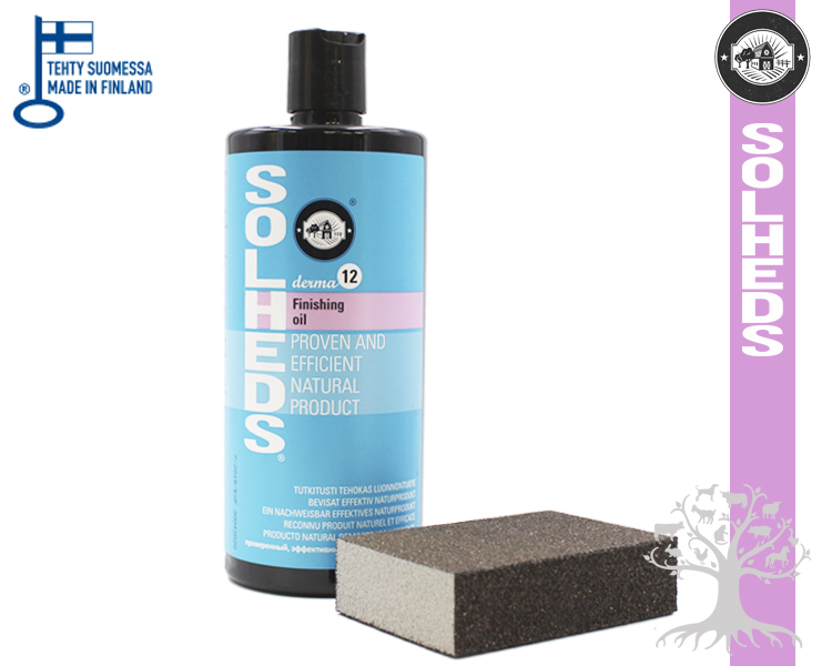 Solheds Derma12 Hoitoöljy Finishing Oil. Derma12 on on puhtaista ja luonnonmukaisista raaka-aineista valmistettu hoitoöljy hevosten, koirien ja kissojen karvapeitteen viimeistelyyn sekä kavioiden hoitoon. Derma12 kosteuttaa ja edesauttaa ennaltaehkäisemään kavioiden pintahalkeamia, häiritsemättä kavion omaa kosteustasapainoa. Loistava viimeistelykäsittely, jättää kauniin kiillon. Kisakiiltoon turpa ja silmän ympärykset Derma12 finishing oil-tuotteella ihoa hoitaen.
