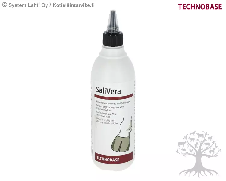 Technobase Sorkkahoitogeeli SaliVera 500ml. Geeli rasittuneiden sorkkien ja kavioiden hoitoon ja puhdistukseen. Sisältää salisyylihappoa ja aloe veraa. Salisyylihappo pitää sorkkavälin ihon hyvässä kunnossa. Helppo levittää optimoidun viskositeetin ansiosta. Geeli sopii naudoille, hevosille, lampaille ja vuohille. Pakkauskoko: 500ml pullo.