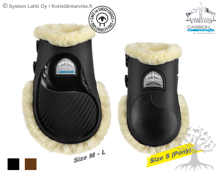 Veredus Carbon Gel STS Vento Takajalansuojat. Erittäin korkealaatuiset, huipputekniset ja kestävät hiilikuitua ja STS -keinolampaankarvaa sisältävät takajalansuojat, joissa on käytetty ihan uudenlaista ilmanvaihto- ja suojausteknologiaa. Uusi innovatiivinen ilmanvaihtotekniikka pitää hevosen jalkojen lämpötilan tasaisena vähentäen rasituksen aikana hevosen jalkoihin kohdistuvaa lämpörasitusta, edistäen näin myös niiden rasituksen jälkeistä palautumista. Suojien uusi "sirompi" ja anatomisempi muotoilu tarjoaa hevoselle maksimaalisempaa liikkumavapautta ja mukavuutta. Suojissa on kaksi joustavaa ja säädettävää nepparikiinnitteistä kiinnitysremmiä, jotka takaavat tukevan kiinnityksen (neppari loksahtaa omaan koloonsa). Suojissa on hienot Vereduksen logot. Carbon Gel Vento -suojat on nimetty saksalaisen olympiakultamitalisti Marcus Ehning mukaan. Valmistettu Italiassa. Katso esittelyvideo!