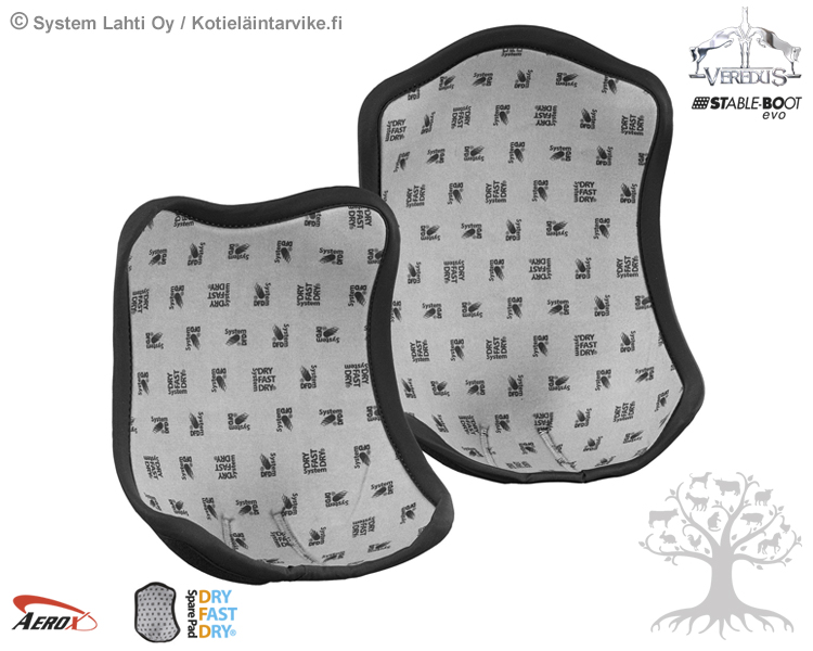Veredus Tallisuojan Stable Boot DFD Sisävaihtopadi (etusuoja). Erittäin korkealaatuiset ja anatomisesti muotoillut tallisuojan Dry Fast Dry -sisävaihtopadit, jotka sopivat Vereduksen etujalan Stable-Boot Evo -tallisuojiin ja Magnetic Stable-Boot -magneettisuojiin. Dry Fast Dry -sisävaihtopadit on valmistettu pehmeästä, erittäin hengittävästä ja helppohoitoisesta Aerox -neopreenista ja DFD® -materiaalista, joka on viimeistelty joustavalla ja pehmeällä Lycralla. DFD® - materiaalilla on erityisen suuri imukyky, joten se imee kosteutta tehokkaammin kuin mikään muu luonnollinen tai synteettinen kuitu, pitäen ihon kuivana. Sisäpuolinen DFD® (Dry Fast Dry®) -padi kiinnitetään tarranauhalla tallisuojan ulkopuoliseen suojaosaan. Myydään pareittain. Valmistettu Italiassa.
