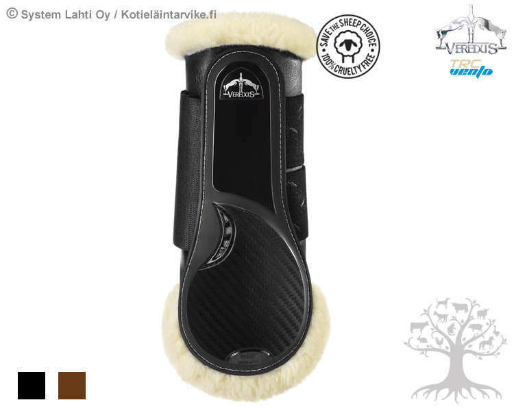 Veredus TRC STS Vento Etujalansuojat. Erittäin laadukkaat ja kestävät STS -keinolampaankarvaa sisältävät etujalan hivutussuojat, joissa on käytetty ihan uudenlaista ilmanvaihto- ja suojausteknologiaa. Uusi innovatiivinen ilmanvaihtotekniikka pitää hevosen jalkojen lämpötilan tasaisena vähentäen rasituksen aikana hevosen jalkoihin kohdistuvaa lämpörasitusta, edistäen näin myös niiden rasituksen jälkeistä palautumista. Suojien anatominen muotoilu tarjoaa hevoselle erinomaista liikkumavapautta ja mukavuutta. Suojissa on joustavat ja tukevat tupla-tarranauhakiinnitysremmit. Suojissa on hienot Vereduksen logot. Valmistettu Italiassa.