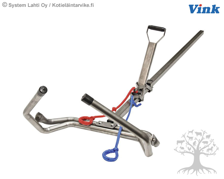 Vink Vasikan vetolaite Bavaria A800. Vasikan vetolaitteen avulla yksikin henkilö voi avustaa vaikeammatkin poikimiset. Liukumattomat vetonarut. Nopea vedon vapautus kovassakin vedossa takaa turvallisuuden. Tarvittaessa käyttäjä voi olla molemmatkin kädet vapaana. Valmistettu kestävästä ja ruostumattomasta teräksestä. Vetotangon pituus 180cm. Vetolaitteella voidaan vetää alaspäin, taakse ja ylöspäin. Peräkkäin sijoitetut vetokoukut mahdollistavat myös vuorovedon. Sopii erityisesti lihanaudoille.