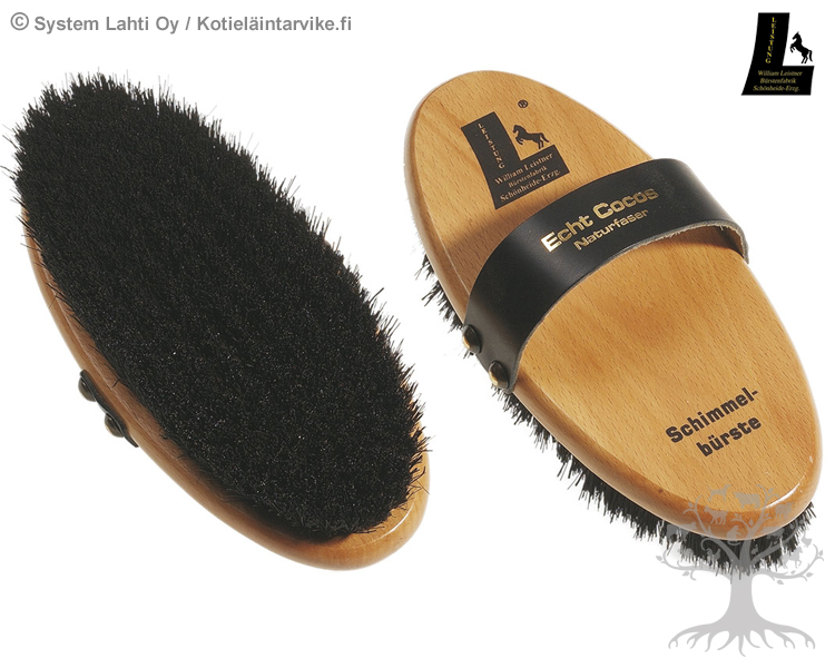 William Leistner Schimmel Kimoharja 1b60. William Leistnerin Schimmel on kimoille, harmaille, palomino ja muille vaaleille hevosille suunnattu erikoisharja. Harjakset on valmistettu 100% aidosta luonnon kookoskuiduista. Lyhyet ja karkeahkot kookoskuituharjakset irrottavat vaaleasta karvasta erittäin tehokkaasti likaa ja puhdistaa karvan "kellertäviä kohtia". Luonnonmateriaaleista valmistetut harjat eivät muodosta karvaan sähköstaattista varausta. Suosittelemme tätä harjaa jokaiselle kimon omistajalle "must-have". Made in Germany - Valmistettu Saksassa!