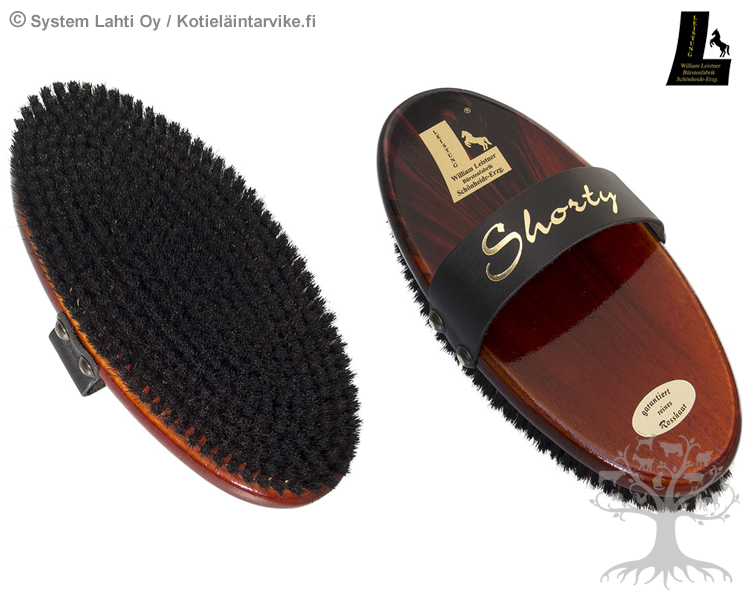 William Leistner Shorty 1b66. William Leistnerin Shorty on suunnattu kesä- ja lyhytkarvaisille sekä klipatuille hevosille. Harjakset on valmistettu aidosta hevosen häntäjouhista. Harjan lyhyet (15mm), pehmeät ja tiiviit harjakset irrottavat hevosen oman ihon rasvaa karvan pintaan tehden karvasta upean kiiltävän. Lisäksi ihorasva kosteuttaa karvaa ja vähentää karvan sähköisyyttä sekä puhdistaa erinomaisista pölystä. Made in Germany - Valmistettu Saksassa!