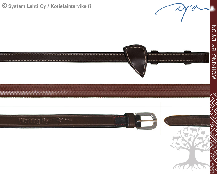 Basic Working by Dyon -malliston tunnusmerkki on sen klassisen ajaton kauneus, laadukkuus, kermanväriset tikkaukset ja ruostumattomat terässoljet. Working by Dyon -mallisto on valmistettu erittäin laadukkaasta, kestävästä ja kasviparkitusta Dy’on Buffalo -nahasta. Working by Dyon -mallisto sisältää kaikkiin lajeihin (mm. este-, koulu-, kenttäratsastus) soveltuvia suitsikokonaisuuksia. Hinnaltaan edullisempi Working by Dyon -mallisto on suunnattu päivittäiseen treenikäyttöön.