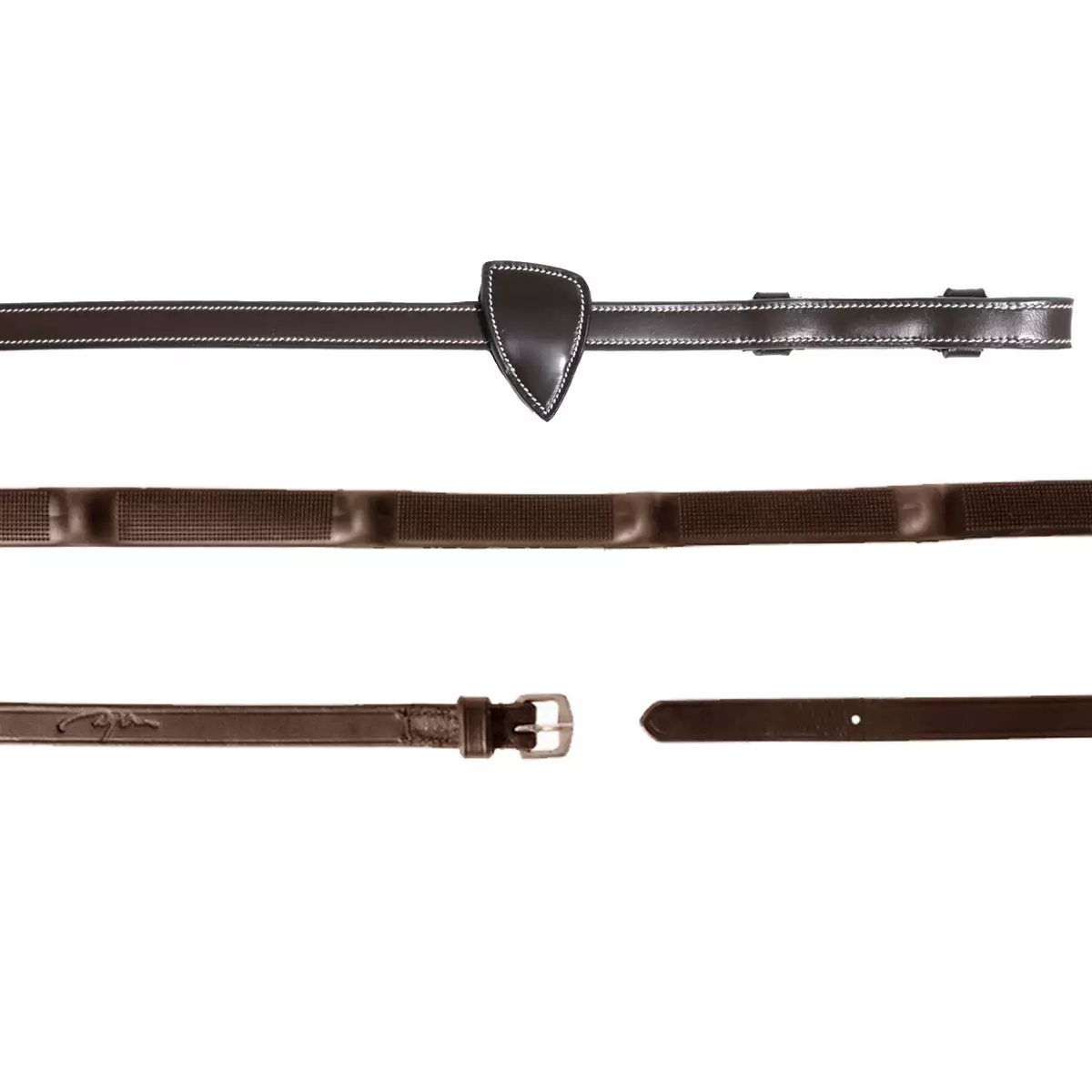 Working by Dyon -mallisto on valmistettu laadukkaasta ja kestävästä Dy’on Buffalo -nahasta. Ohjien kumiosan sisällä on nylonvahvike, joka tekee ohjista hyvin kestävät. Kumiohjien sisään integroidut stopparit (7 integrated stops) ja kuminystyräpinta auttavat ratsastajaa saamaan ohjista pitävän otteen. Ohjien leveys 1/2", 13mm. Ohjissa on tyylikkäät D -malliset martingaalistopparit. Ohjien piilosoljet tekevät suitsista huolitellun näköiset. Sopii kaikkiin Working by Dyon suitsimalleihin.